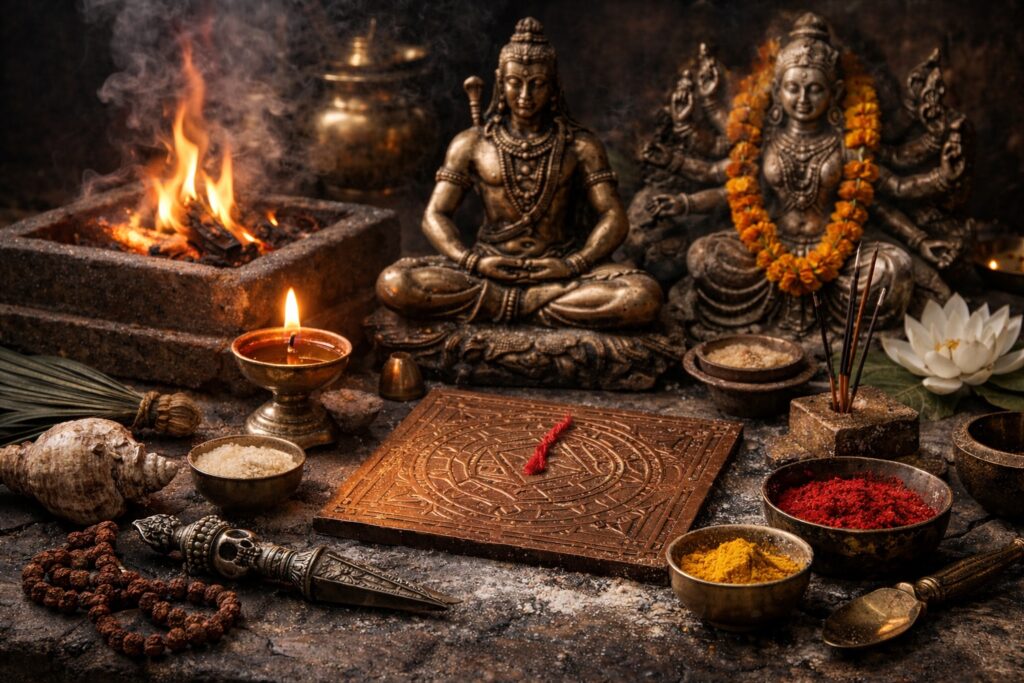 In Vedic cosmology, energy descends through sound, crystallizes through form, and is sustained through attention. Yantras, for example, are not drawings; they are frozen mantras. When consecrated, they function continuously without being “used.” This is very different from Western spell logic, which often relies on repeated acts. A properly consecrated Vedic object works silently, constantly, and impersonally.