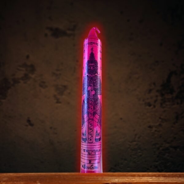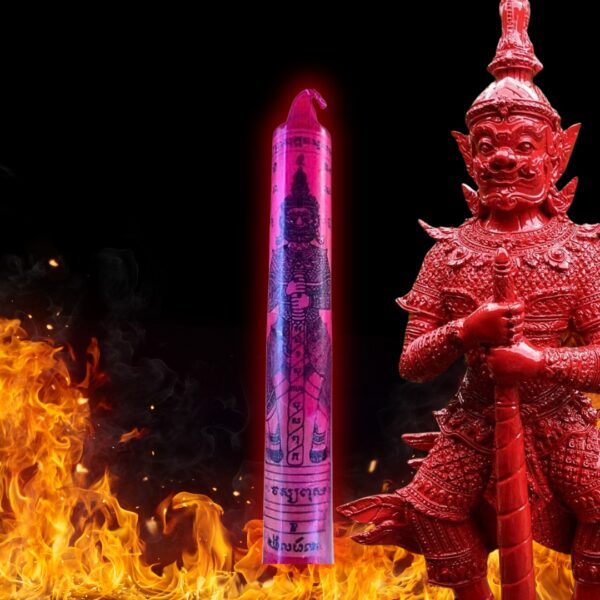 The candle serves as a dual-purpose spiritual implement. On one hand, it can be used in rituals to revere Tao Wessuwan, acting as an offering that pleases the deity and invokes his blessings. On the other hand, it can be used as a standalone tool for energy cleansing, its flame acting like a purifying fire that consumes negativity and leaves only tranquility in its wake.