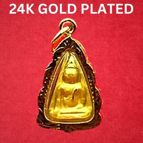 Phra Nang Phaya is part of the Grand Benjapakee set and is renowned as the “Queen of amulets.” The triangle amulet depicts a Buddha in the subduing Mara pose (left hand rests on the lap with the palm facing up, and the right hand bends over the knees with the palm facing the ground), which represents enlightenment and calmness.
