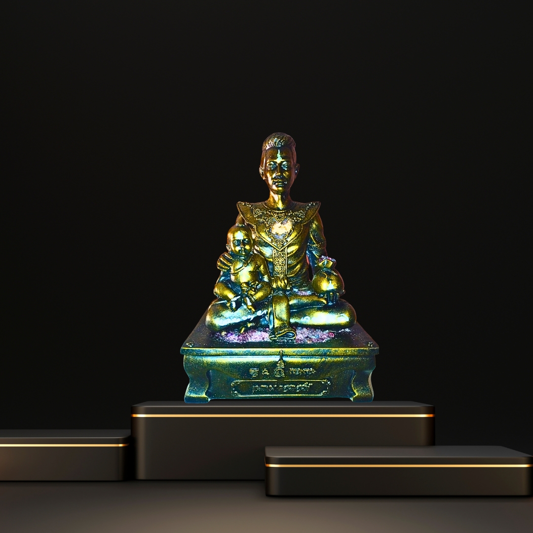 This statue has undergone a sacred consecration process, orchestrated meticulously to channel divine energies into every intricately carved detail. Its sanctity is amplified through the embedding of lustrous gemstones—sapphires and rubies—that not only enhance the aesthetic appeal but also serve as conductors of ethereal energies, harmonizing with the innate mystical powers of Khun Paen and Kumantong. Furthermore, the statue is composed of 108 sacred materials, each chosen for their unique spiritual properties, resonating together to create a magnetic field of protective and enriching energies.