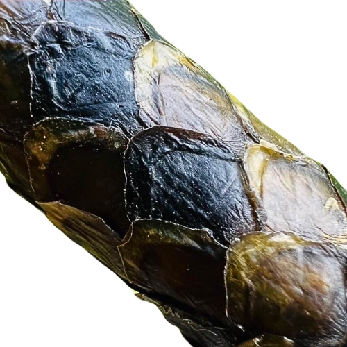 The Python Takrut, an embodiment of potent spiritual energy and ancient Thai mysticism. This sacred scroll, meticulously crafted from brass and ensconced within the skin of a python, serves as a conduit between the tangible world and the enigmatic frequencies of otherworldly realms. Revered in occult and mystical arts, the python’s skin is not merely a covering; it is believed to be a powerful amplifier of spiritual forces, radiating protection and a robust spiritual shield for its possessor.