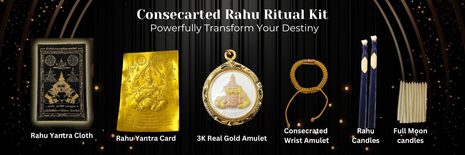 Included with your purchase is a limited-edition 3K Real Gold Rahu amulet, consecrated through 12 full moons. This amulet is available exclusively with this edition and serves as a powerful talisman for protection, transformation, and prosperity. Carry Rahu’s divine energy with you wherever you go.